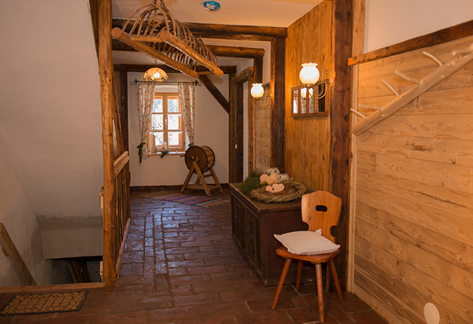 Für größere Gruppen besteht auch die Möglichkeit das Bauernhaus als Ganzes zu mieten, die Stiege im Inneren wurde erhalten,