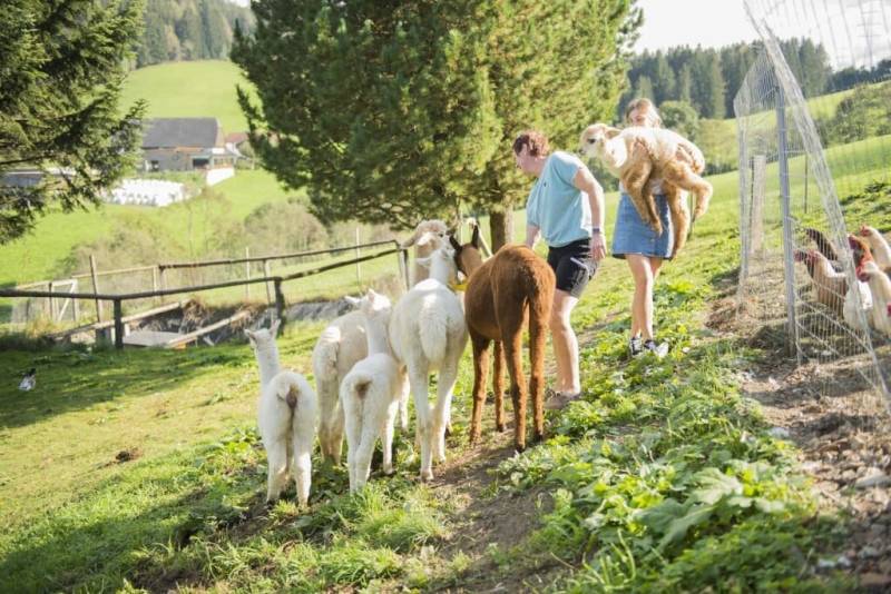 Ein Urlaub am Bauernhof verspricht bei uns unvergessliche Momente. Morgens frische Eier aus dem Nest holen, die Ruhe der Alpakas genießen. Unser Bauernhof ist ein lebendiger Platz, wo man die Tiere hautnah spüren kann. Hasen, Katzen, Hasen, Kälber dürfen gestreichelt, gefüttert und beobachtet werden. Alpakawanderung sorgt für pures Erlebnis für die ganze Familie. Lagerfeuer, Grillen runden den Tag ab.