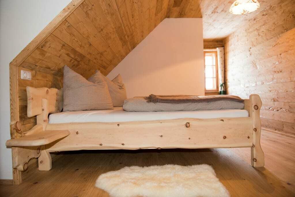 Behaglichkeit und Wohlbefinden in dieses Haus zu bringen. Die Zimmer sind sehr urig ausgestattet mit originellen Zirbenbetten und