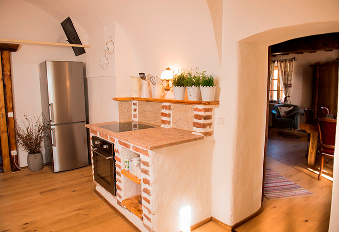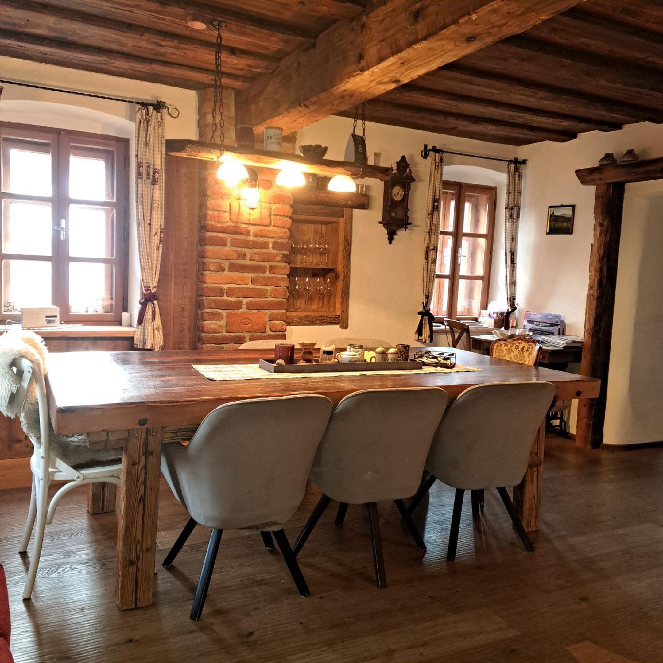 Uns war es wichtig den Charakter dieses alten Bauernhauses zu erhalten. Die Räumlichkeiten im Erdgeschoß sind originalgetreu - die originalen Wände,