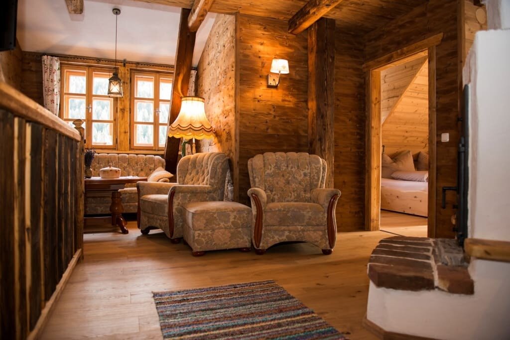 Behaglichkeit und Wohlbefinden in dieses Haus zu bringen. Die Zimmer sind sehr urig ausgestattet mit originellen Zirbenbetten und
