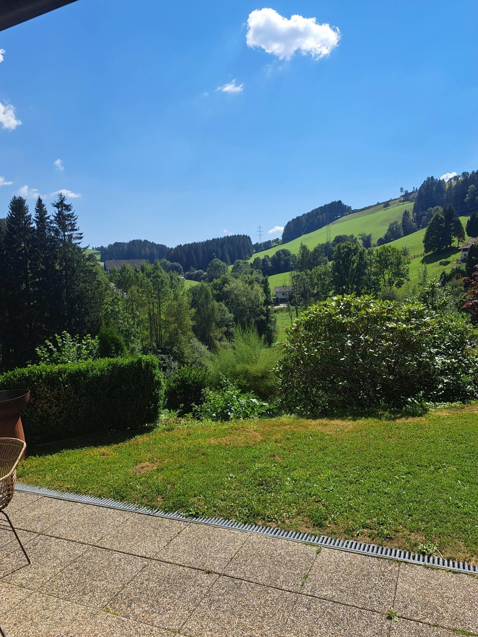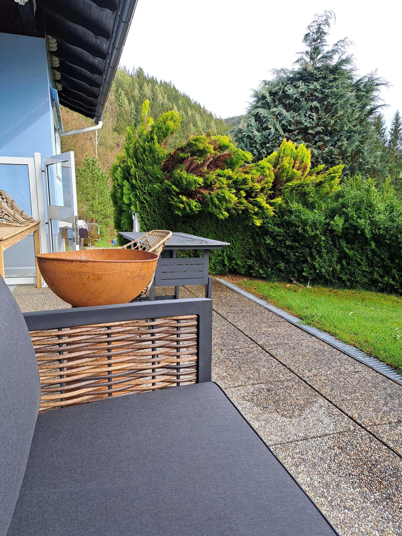 Die Terrasse bietet viel Platz zum Verweilen mit herrlichen Blick zu unserem Bauernhof,